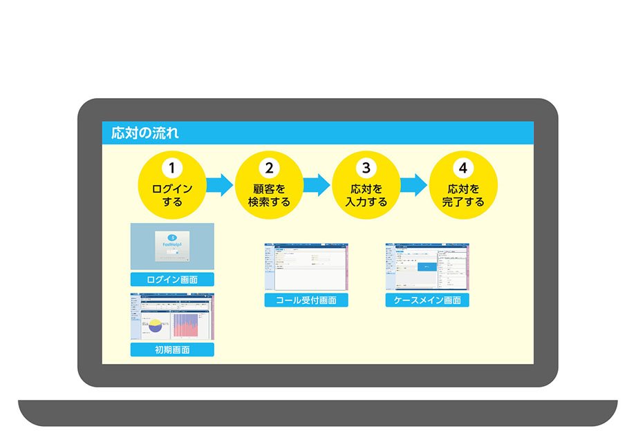 まずは、全体の流れについて説明します。Fastちゃん、「応対の流れ」という画面、見えていますか?