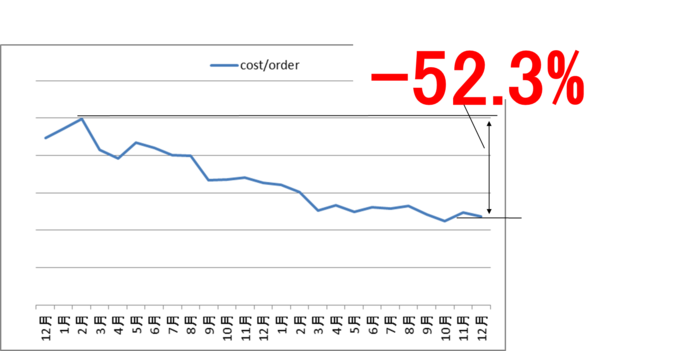 「KPIの指標としてCPO(Cost Per Order/1注文あたりのCSコスト)、すなわち1注文あたりのコストを指標として52.3%のコスト削減を実施しました」とケンコーコム株式会社 カスタマー本部長の田畑氏は語る。